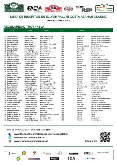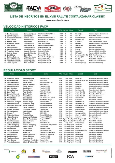 El grupo GIAT de la Guardia Civil de Tráfico nos solicita todos los años el listado de vehículos y pilotos inscritos en el Rallye Costa Azahar Clàssic. Nosotros se lo proporcionamos con la mayor rapidez posible e incluso de forma progresiva según se van inscribiendo los participantes, para que si detectan cualquier anomalía os dé tiempo a subsanarlas.